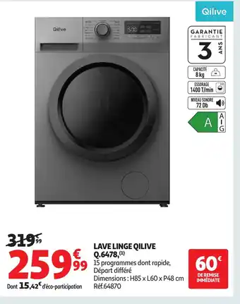 Actuellement en offre chez Auchan : QILIVE Lave linge Q6478 ✅ Valable du 2-01 au 11-01.