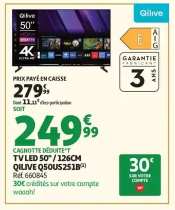 Actuellement en offre chez Auchan : QILIVE TV LED 50" / 126CM Q50US251B ✅ Valable du 16-12 au 24-12.