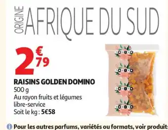 En plus de l'offre Raisins golden, Auchan propose une large gamme de produits. Consultez le Catalogue Auchan hebdomadaire pour découvrir les meilleures offres et promotions. En plus de Raisins golden, il y a aussi : Raisins golden, DOMINO Raisins golden & Holy fruits raisins golden.