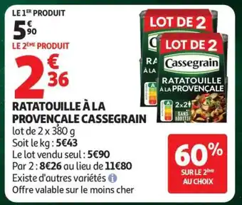 Actuellement en offre chez Auchan : Ratatouille à la Provençale Cassegrain ✅ Valable du 17-03 au 22-03.