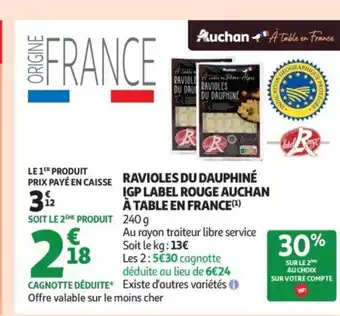 Actuellement en offre chez Auchan : Ravioles du dauphiné igp label rouge auchan à table en france ✅ Valable du 26-12 au 4-01.