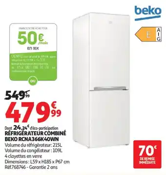Réfrigérateur combiné beko rcna366k40wn offres et promotions en ligne chez Auchan