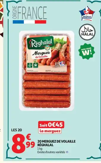 Actuellement en offre chez Auchan : RÉGHALAL 20 merguez de volaille ✅ Valable du 3-02 au 1-03.