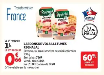 Actuellement en offre chez Auchan : REGHALAL Lardons de volaille fumés ✅ Valable du 3-02 au 28-02.