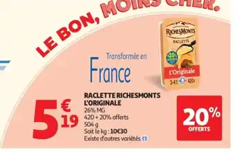 RICHESMONTS L'ORIGINALE Raclette : offres et promos Auchan à découvrir