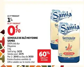 Actuellement en offre chez Auchan : SAMIA Semoule de blé moyenne ✅ Valable du 3-02 au 1-03.
