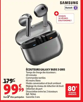 Actuellement en offre chez Auchan : SAMSUNG Écouteurs galaxy buds 3 gris ✅ Valable du 7-01 au 3-02.