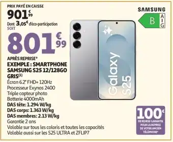 Offre SAMSUNG Exemple: smartphone s25 12/128go gris chez Auchan