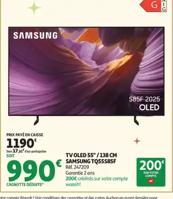 Actuellement en offre chez Auchan : SAMSUNG TV OLED 55"/138 CM TQ55S85F ✅ Valable du 16-12 au 24-12.