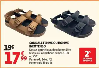 Actuellement en offre chez Auchan : SANDALE FEMME OU HOMME INEXTENSO ✅ Valable du 28-04 au 10-05.
