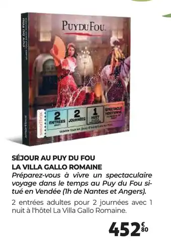 Actuellement, SÉJOUR AU PUY DU FOU LA VILLA GALLO ROMAINE est en promotion chez Auchan. Toutes les informations utiles comme le prix, les conditions et la durée de validité sont affichées sur cette page. Consultez également les promotions similaires pour SÉJOUR AU PUY DU FOU LA VILLA GALLO ROMAINE, afin de faire le meilleur choix. La promo SÉJOUR AU PUY DU FOU LA VILLA GALLO ROMAINE est valable du 26-03-2026 au 02-05-2026. Si elle est expirée, regardez les autres offres équivalentes. Vous pouvez aussi suivre cette catégorie de produit pour être alerté lorsqu’une nouvelle promotion SÉJOUR AU PUY DU FOU LA VILLA GALLO ROMAINE apparaît chez Auchan.Questions fréquemment posées au sujet de SÉJOUR AU PUY DU FOU LA VILLA GALLO ROMAINE