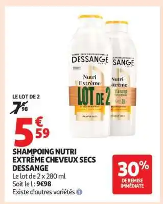 Actuellement en offre chez Auchan : SHAMPOING NUTRI EXTRÊME CHEVEUX SECS DESSANGE ✅ Valable du 17-03 au 22-03.