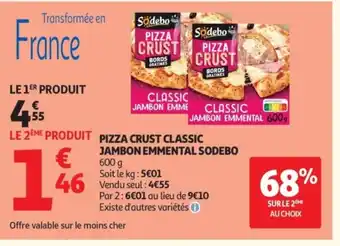 Actuellement en offre chez Auchan : SODEBO Pizza crust classic jambon emmental ✅ Valable du 10-02 au 22-02.