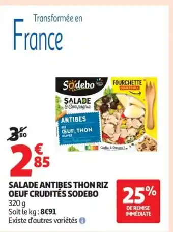 Actuellement en offre chez Auchan : SODEBO Salade antibes thon riz oeuf crudités ✅ Valable du 17-02 au 1-03.