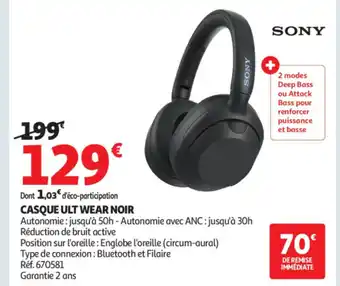 Actuellement en offre chez Auchan : SONY Casque ult wear noir ✅ Valable du 26-12 au 4-01.