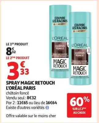 Actuellement en offre chez Auchan : Spray Magic Retouch L'oréal Paris ✅ Valable du 17-03 au 22-03.