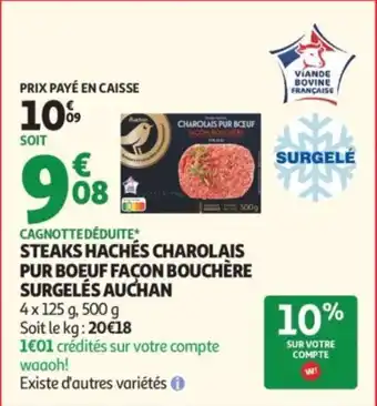 Steaks hachés charolais pur boeuf façon bouchère surgelés auchan 500 g