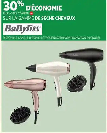 Offre SUR LA GAMME DE SECHE CHEVEUX BaByliss chez Auchan