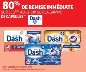 Actuellement en offre chez Auchan : SUR LE 2ÈME AU CHOIX SUR LA GAMME DE CAPSULES Dash ✅ Valable du 26-12 au 6-01.