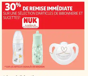 En plus de l'offre Sur une sélection d'articles de bibonnerie et sucettes, Auchan propose une large gamme de produits. Consultez le Catalogue Auchan hebdomadaire pour découvrir les meilleures offres et promotions. En plus de Sur une sélection d'articles de bibonnerie et sucettes, il y a aussi : AUCHAN BABY Sur une sélection d'articles biberonnerie et sucettes, Sur une sélection d'articles de repas et de bain & NUK Lot de 2 sucettes.