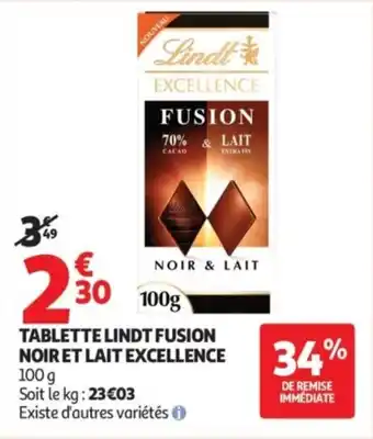 Tablette lindt fusion noir et lait excellence offres et promotions en ligne chez Auchan