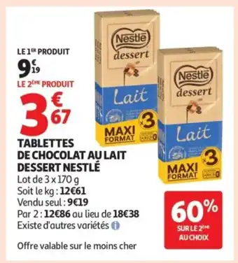 Tablettes de chocolat au lait dessert nestlé offres et promotions en ligne chez Auchan