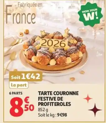 Actuellement en offre chez Auchan : Tarte couronne festive de profiteroles ✅ Valable du 16-12 au 31-12.