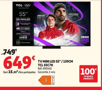 Actuellement en offre chez Auchan : TCL TV MINI LED 55"/139CM 55C7K ✅ Valable du 7-01 au 3-02.