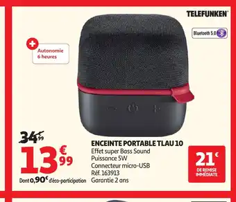 Actuellement en offre chez Auchan : TELEFUNKEN Enceinte portable tlau 10 ✅ Valable du 7-01 au 3-02.