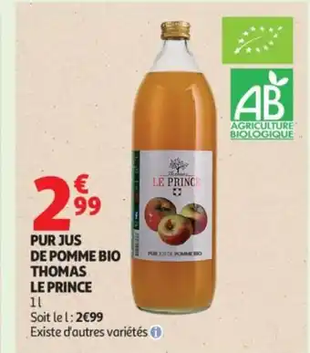 Actuellement en offre chez Auchan : THOMAS LE PRINCE Pur jus de pomme bio ✅ Valable du 24-02 au 8-03.