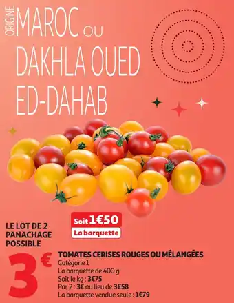 Actuellement en offre chez Auchan : Tomates cerises rouges ou mélangées ✅ Valable du 20-12 au 24-12.