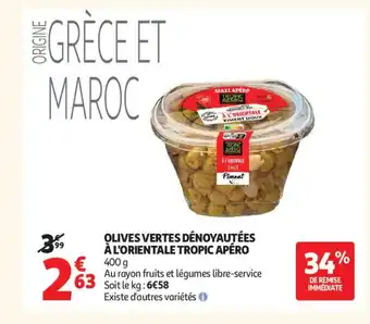 TROPIC APÉRO Olives vertes dénoyautées à l'orientale : offres et promos Auchan à découvrir