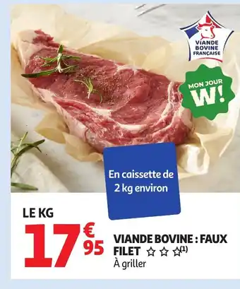Actuellement, Viande bovine faux filet est en promotion chez Auchan. Toutes les informations utiles comme le prix, les conditions et la durée de validité sont affichées sur cette page. Consultez également les promotions similaires pour Viande bovine faux filet, afin de faire le meilleur choix. La promo Viande bovine faux filet est valable du 02-01-2026 au 11-01-2026. Si elle est expirée, regardez les autres offres équivalentes. Vous pouvez aussi suivre cette catégorie de produit pour être alerté lorsqu’une nouvelle promotion Viande bovine faux filet apparaît chez Auchan.Questions fréquemment posées au sujet de Viande bovine faux filet