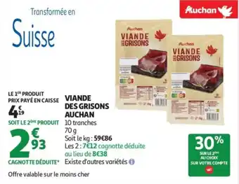 Offre Viande des grisons auchan chez Auchan