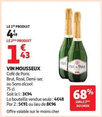 Actuellement en offre chez Auchan : Vin Mousseux ✅ Valable du 8-04 au 19-04.
