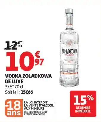 Actuellement en offre chez Auchan : Vodka zoladkowa de luxe ✅ Valable du 21-04 au 2-05.