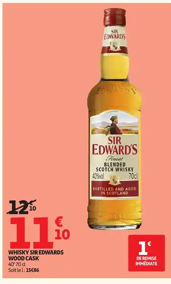 Actuellement en offre chez Auchan : Whisky sir edwards wood cask 40° ✅ Valable du 6-01 au 18-01.