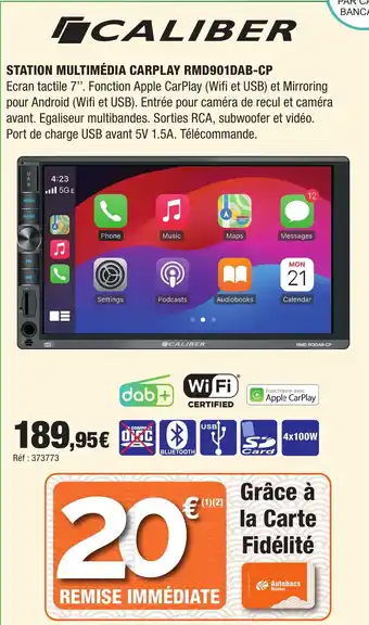 Actuellement en offre chez Autobacs : CALIBER Station multimédia carplay rmd901dab-cp ✅ Valable du 23-04 au 3-06.