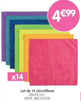 L'offre est disponible dans plusieurs magasins, vérifiez tous les produits pour obtenir le Lot de 14 microfibres le moins cher. Si vous souhaitez savoir si l'article est en vente avec une plus grosse remise dans un autre magasin, consultez la catégorie 'Bazar et Déstockage'. Ces offres pourraient aussi vous intéresser : Lot de 5 microfibres, Lot de 5 microfibres & Lot de 12 microfibres réutilisables.