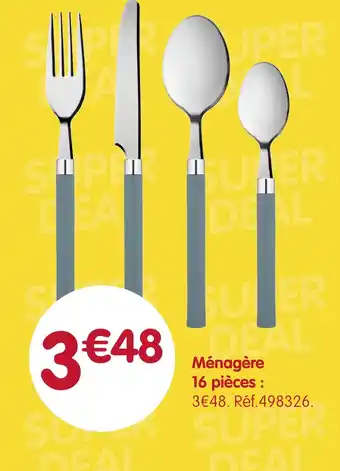 L'offre est disponible dans plusieurs magasins, vérifiez tous les produits pour obtenir le Ménagère le moins cher. Si vous souhaitez savoir si l'article est en vente avec une plus grosse remise dans un autre magasin, consultez la catégorie 'Bazar et Déstockage'. Ces offres pourraient aussi vous intéresser : Ménagère, Ménagère & Ménagère 16 pièces.