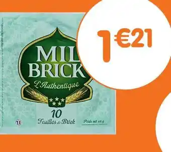 L'offre est disponible dans plusieurs magasins, vérifiez tous les produits pour obtenir le Mil brick feuilles de brick le moins cher. Si vous souhaitez savoir si l'article est en vente avec une plus grosse remise dans un autre magasin, consultez la catégorie 'Bazar et Déstockage'. Ces offres pourraient aussi vous intéresser : MIL BRICK Feuilles de Brick L'Authentique, MIL BRICK Feuilles de Brick L'Authentique & Mil brick feuilles de brick l'authentique.