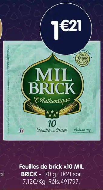 L'offre est disponible dans plusieurs magasins, vérifiez tous les produits pour obtenir le Mil brick feuilles de brick x10 le moins cher. Si vous souhaitez savoir si l'article est en vente avec une plus grosse remise dans un autre magasin, consultez la catégorie 'Bazar et Déstockage'. Ces offres pourraient aussi vous intéresser : Feuilles de Brick L'Authentique MIL BRICK, Mil brick feuilles de brick l'authentique & Feuilles De Brick La Pastilla.
