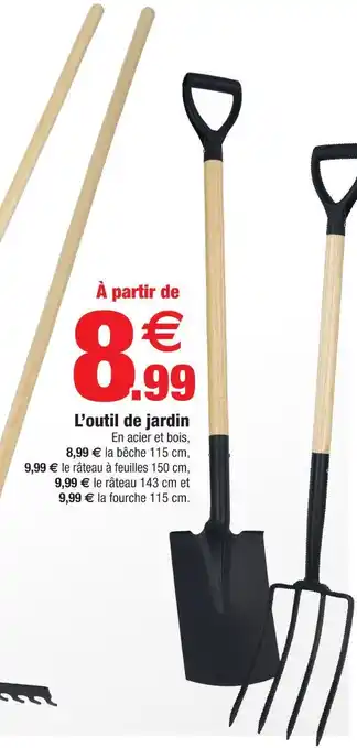 Le prix de l'offre Bêche en acier et bois 115 cm se trouve également en haut de la page, ainsi que la date à laquelle l'offre est disponible. Vous pouvez également vérifier les prix dans le Catalogue Bazarland actuel ou sur le site Internet de Bazarland. Les offres vous permettent d'acheter les produits Bazarland au prix le plus bas.