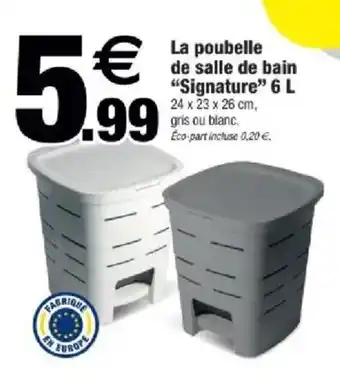 L'offre est disponible dans plusieurs magasins, vérifiez tous les produits pour obtenir le La poubelle de salle de bain Signature le moins cher. Si vous souhaitez savoir si l'article est en vente avec une plus grosse remise dans un autre magasin, consultez la catégorie 'Bazar et Déstockage'. Ces offres pourraient aussi vous intéresser : Poubelle de salle de bain 3L, Détartrant salle de bain & Étagère salle de bain.