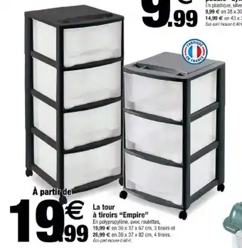 L'offre est disponible dans plusieurs magasins, vérifiez tous les produits pour obtenir le La tour à tiroirs Empire le moins cher. Si vous souhaitez savoir si l'article est en vente avec une plus grosse remise dans un autre magasin, consultez la catégorie 'Bazar et Déstockage'. Ces offres pourraient aussi vous intéresser : La tour à tiroirs, Tour 5 tiroirs & TOUR 3 TIROIRS.