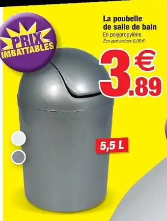 Le prix de l'offre Poubelle de salle de bain se trouve également en haut de la page, ainsi que la date à laquelle l'offre est disponible. Vous pouvez également vérifier les prix dans le Catalogue Bazarland actuel ou sur le site Internet de Bazarland. Les offres vous permettent d'acheter les produits Bazarland au prix le plus bas.