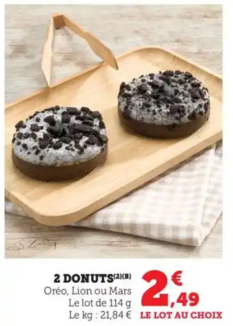 L'offre est disponible dans plusieurs magasins, vérifiez tous les produits pour obtenir le 2 donuts le moins cher. Si vous souhaitez savoir si l'article est en vente avec une plus grosse remise dans un autre magasin, consultez la catégorie 'Supermarché'. Ces offres pourraient aussi vous intéresser : 2 donuts, 4 donuts & 6 donuts.
