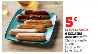 En plus de l'offre 6 eclairs assortis, Bi1 propose une large gamme de produits. Consultez le Catalogue Bi1 hebdomadaire pour découvrir les meilleures offres et promotions. En plus de 6 eclairs assortis, il y a aussi : 6 eclairs assortis, 6 éclairs assortis & Éclairs.