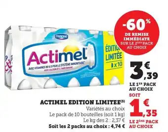 Quand Actimel edition limitee sera-t-elle en promotion ? Ou encore : "Est-ce que Actimel edition limitee sera en promotion la semaine prochaine ?" C’est une question fréquente. Beaucoup de consommateurs établissent leur liste de courses à l’avance. Pour cette raison, nous mettons en ligne les informations sur les promos à venir dès qu’elles sont connues. Cela vous permet de planifier vos achats et de faire de bonnes affaires. Consultez régulièrement notre site pour savoir si une nouvelle promo sur Actimel edition limitee arrive bientôt chez Bi1.Questions fréquemment posées au sujet de Actimel edition limitee