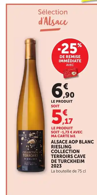 Actuellement en offre chez Bi1 : Alsace aop blanc riesling collection terroirs cave de turckheim 2023 ✅ Valable du 24-02 au 8-03.